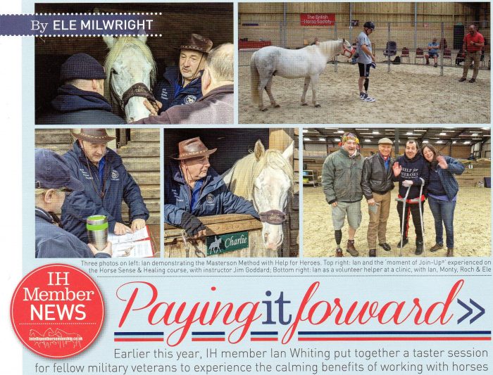 I was honoured to have a page dedicated to me in the latest Intelligent Horsemanship (IH) magazine. My story is a small part of a huge movement to work with horses in a non aggressive way – I was lucky to have found my starting point with Monty Roberts, move on through some IH training,…
